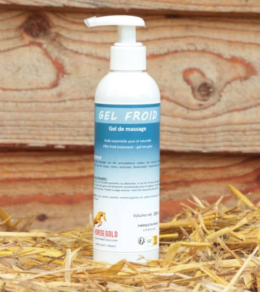 Le GEL FROID dermatologique procure un » EFFET FROID ou FRAIS » immédiatement sur les muscles qui ont été sollicités. L’effet froid ou frais analgésique du froid, apaise votre cheval endolori.